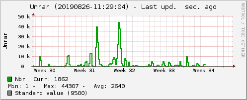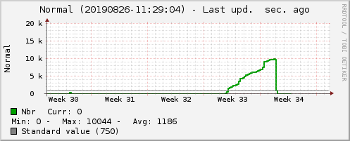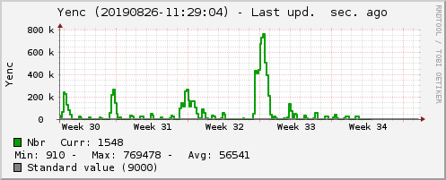 Easynews backlog monthly statistics. When everything’s ok (yes it happens sometimes), Easynews updates its statiticks every 5 minutes and backlog values should be above the standard ones.
