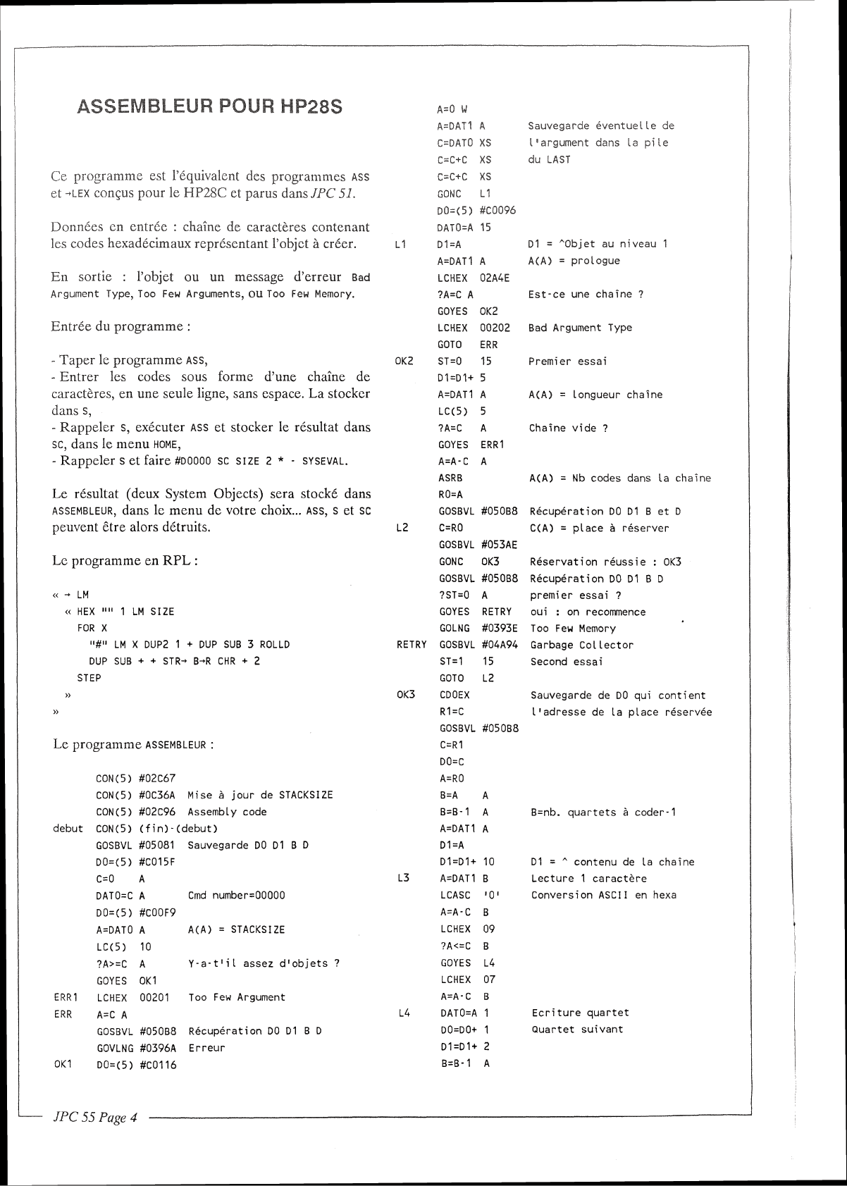 JPC N° 55 - Assembleur pour HP28s