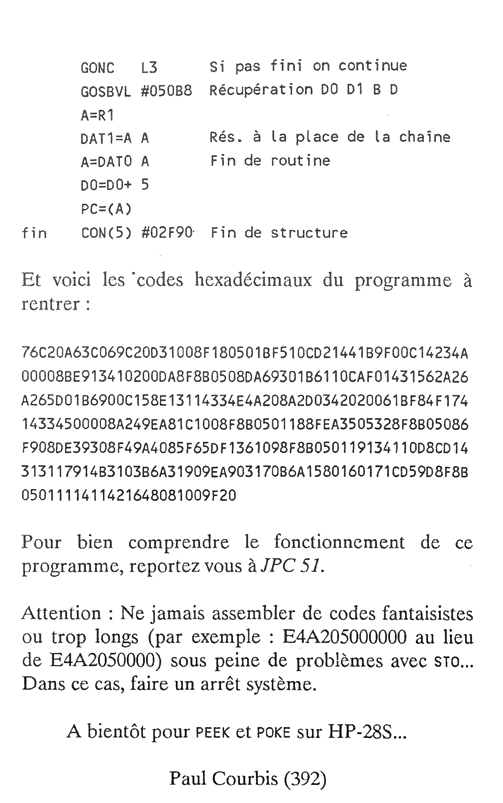 « Assembleur pour HP28s », JPC, n°55, Juin 1988, pp. 4-5.