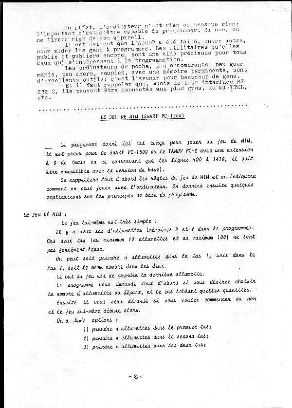 Bulletin de l’ACUOP, N° 16, Novembre 1985, pp. 2-7.