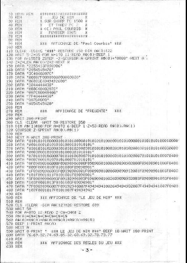 Programme en Basic pour PC1500 (Sharp)