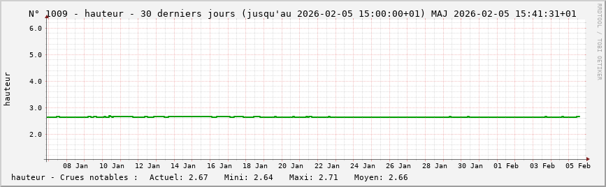 Pour la station nº 1009 située à Soissons [débit] (cours d’eau : Aisne), vous trouverez :