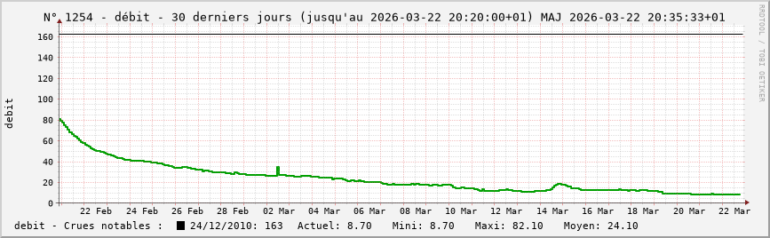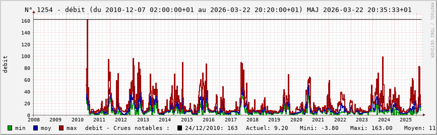 Pour la station nº 1254 située à Clamecy (cours d’eau : Yonne), vous trouverez :