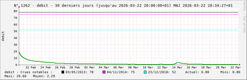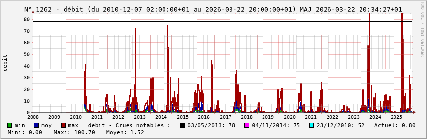 Pour la station nº 1262 située à Brianny (cours d’eau : Armançon), vous trouverez :