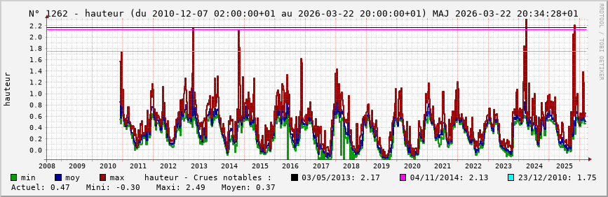 Accueil > Réalisations > Logiciels > Historiques de la hauteur de la Seine et de ses affluents > Statistiques de la station 1262 : Brianny (Armançon)