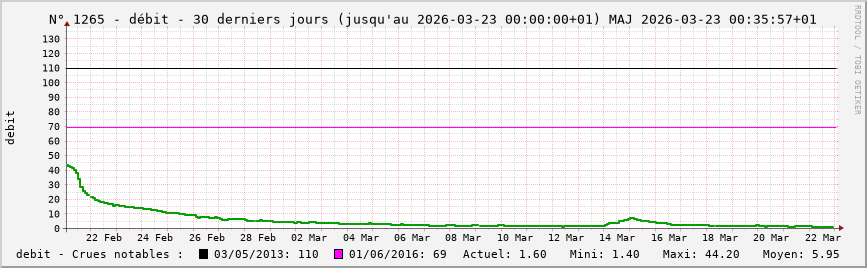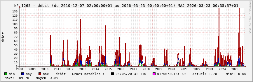 Pour la station nº 1265 située à Quincy-le-Vicomte (cours d’eau : Armançon), vous trouverez :