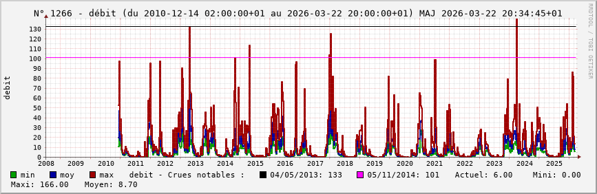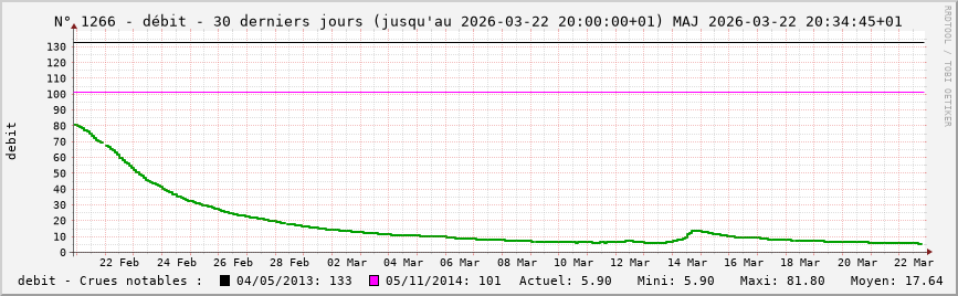Pour la station nº 1266 située à Montbard (cours d’eau : Brenne), vous trouverez :