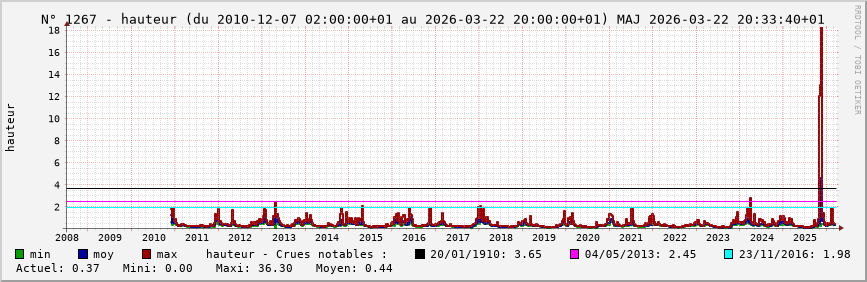 Accueil > Réalisations > Logiciels > Historiques de la hauteur de la Seine et de ses affluents > Statistiques de la station 1267 : Aisy-sur-Armançon (Armançon)