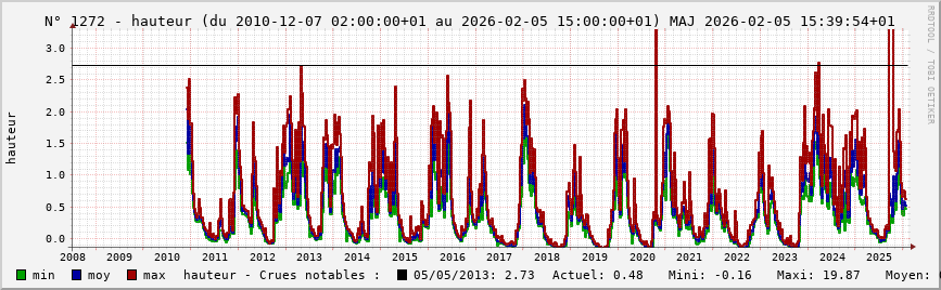 Accueil > Réalisations > Logiciels > Historiques de la hauteur de la Seine et de ses affluents > Statistiques de la station 1272 : Chablis [déviation] (Serein)