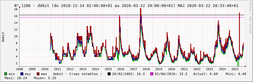 Pour la station nº 1286 située à Pont-sur-Vanne (cours d’eau : Vanne), vous trouverez :