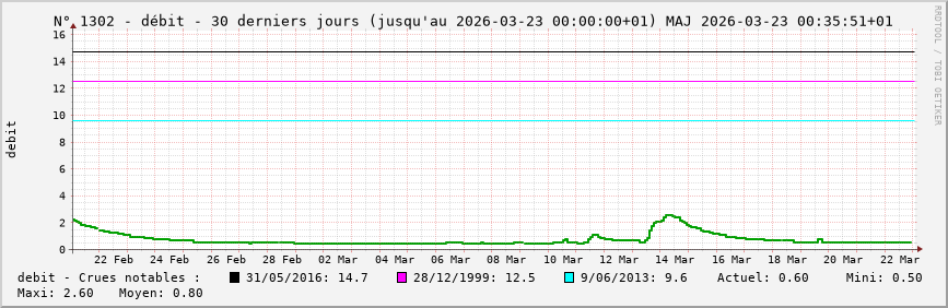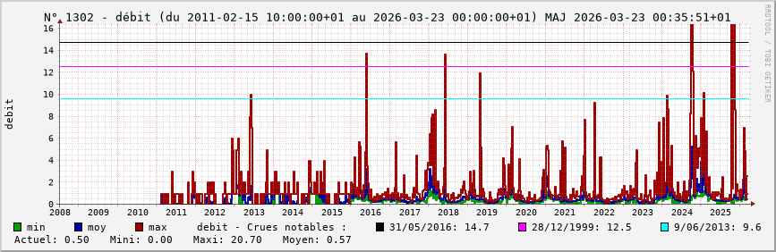 Pour la station nº 1302 située à St-Cyr-sous-Dourdan (cours d’eau : Remarde), vous trouverez :