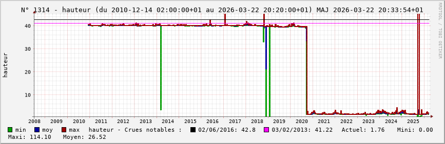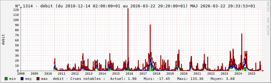 Pour la station nº 1314 située à Boussy-St-Antoine (cours d’eau : Yerres), vous trouverez :