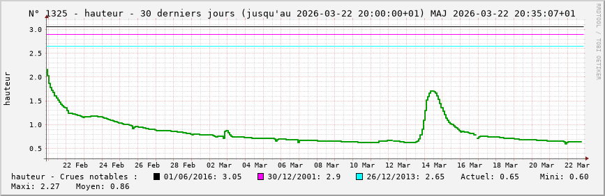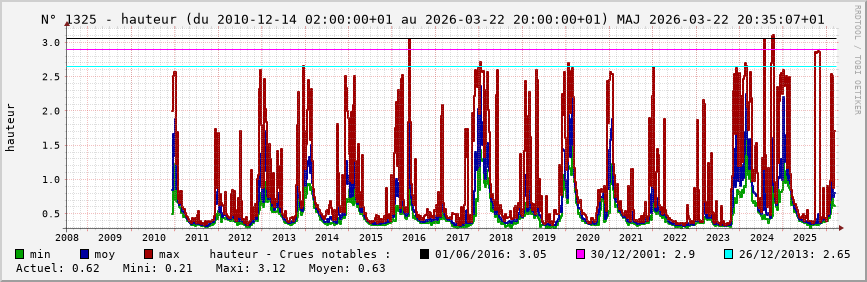 Accueil > Réalisations > Logiciels > Historiques de la hauteur de la Seine et de ses affluents > Statistiques de la station 1325 : Jouarre [Vanry] (Petit Morin)