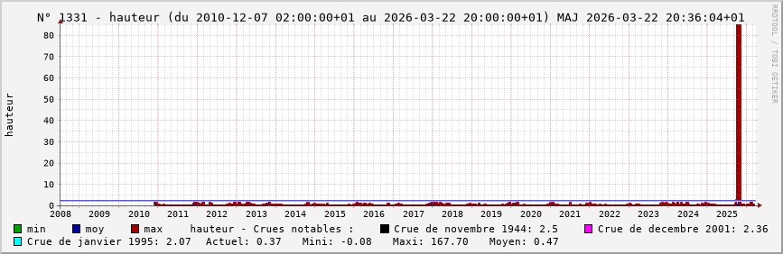 Accueil > Réalisations > Logiciels > Historiques de la hauteur de la Seine et de ses affluents > Statistiques de la station 1331 : Chaumont (Marne)