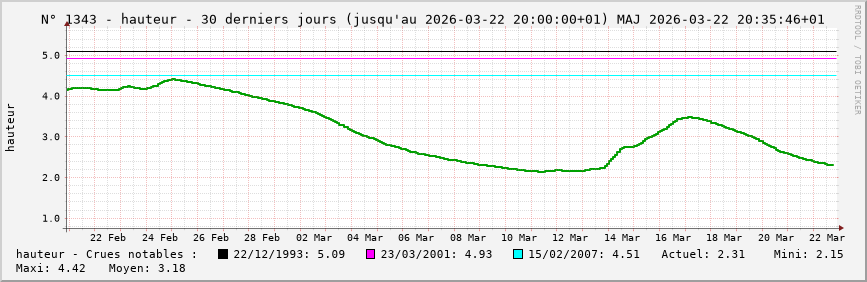 Accueil > Réalisations > Logiciels > Historiques de la hauteur de la Seine et de ses affluents > Statistiques de la station 1343 : Givry-sur-Aisne (Aisne)
