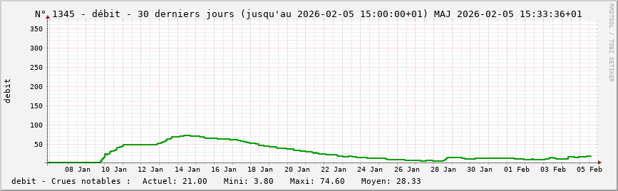 Pour la station nº 1345 située à Berry-au-Bac (cours d’eau : Aisne), vous trouverez :