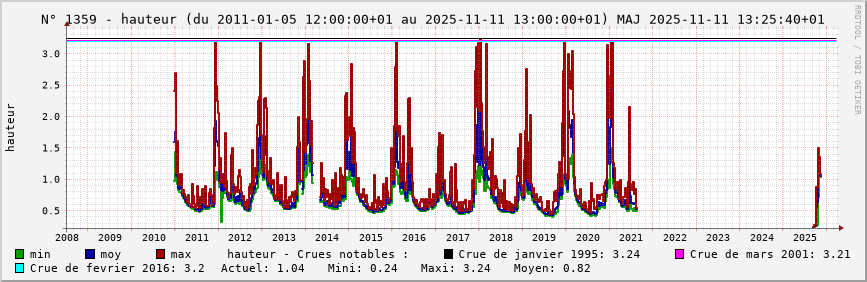 Accueil > Réalisations > Logiciels > Historiques de la hauteur de la Seine et de ses affluents > Statistiques de la station 1359 : Gournay-en-Bray (Epte)