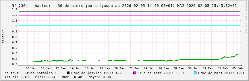 Accueil > Réalisations > Logiciels > Historiques de la hauteur de la Seine et de ses affluents > Statistiques de la station 1364 : Acon (Avre)
