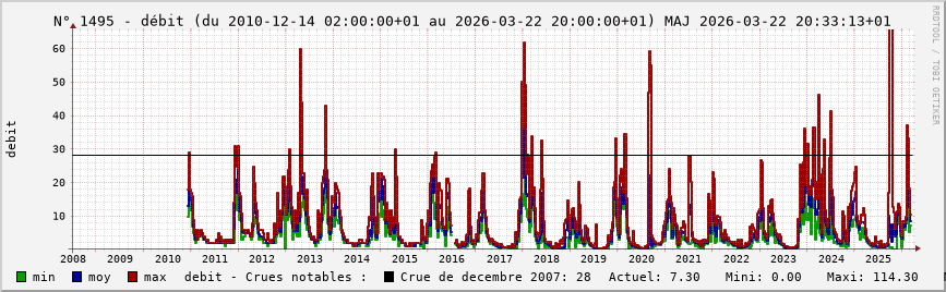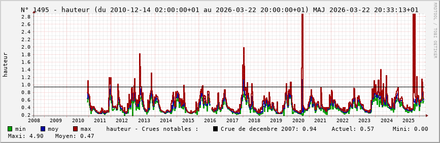 Accueil > Réalisations > Logiciels > Historiques de la hauteur de la Seine et de ses affluents > Statistiques de la station 1495 : Maranville (Aujon)
