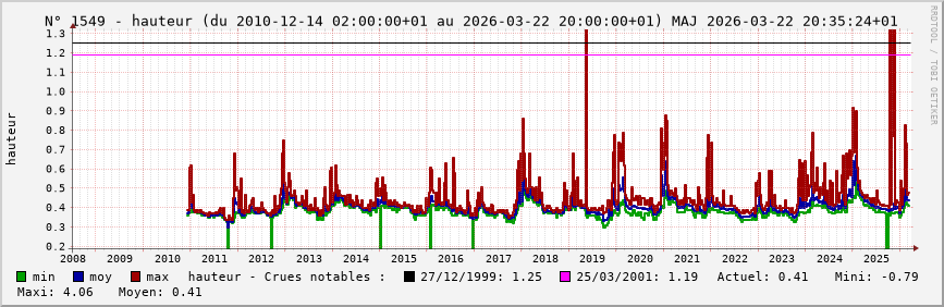 Accueil > Réalisations > Logiciels > Historiques de la hauteur de la Seine et de ses affluents > Statistiques de la station 1549 : Bonnières (Thérain)