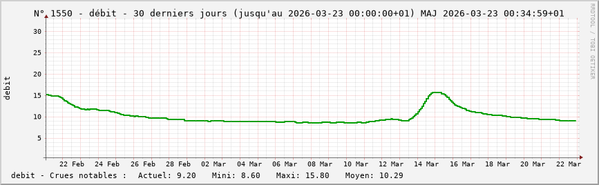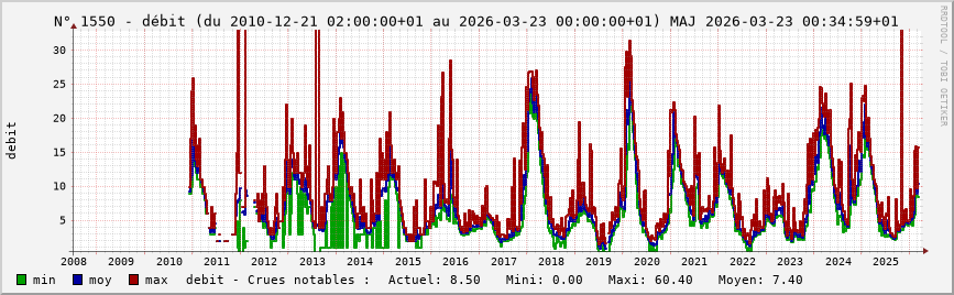Pour la station nº 1550 située à Braine (cours d’eau : Vesle), vous trouverez :