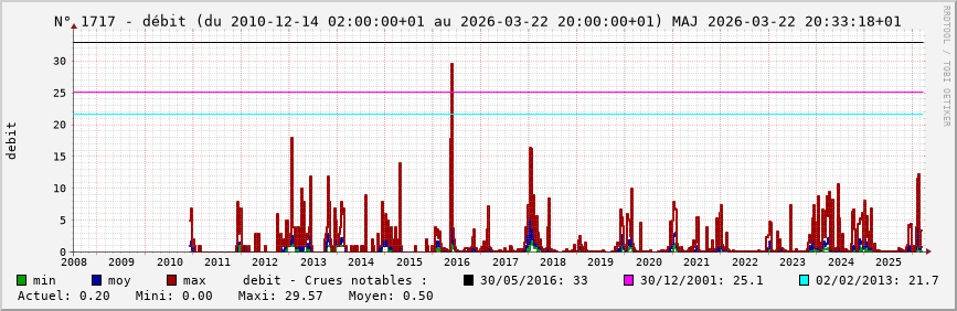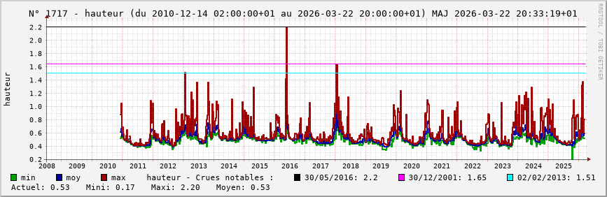 Pour la station nº 1717 située à La Chapelle-sur-Aveyron (cours d’eau : Aveyron), vous trouverez :