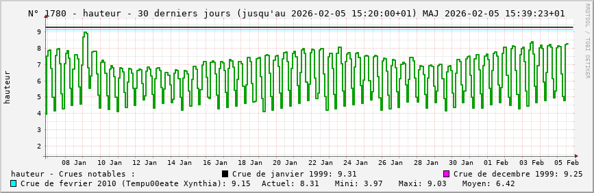 Accueil > Réalisations > Logiciels > Historiques de la hauteur de la Seine et de ses affluents > Statistiques de la station 1780 : Caudebec (Seine)