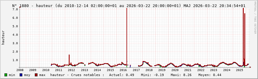 Accueil > Réalisations > Logiciels > Historiques de la hauteur de la Seine et de ses affluents > Statistiques de la station 1880 : St-Aubin (Ardusson)