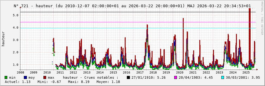 Accueil > Réalisations > Logiciels > Historiques de la hauteur de la Seine et de ses affluents > Statistiques de la station 721 : Chalifert (Marne)
