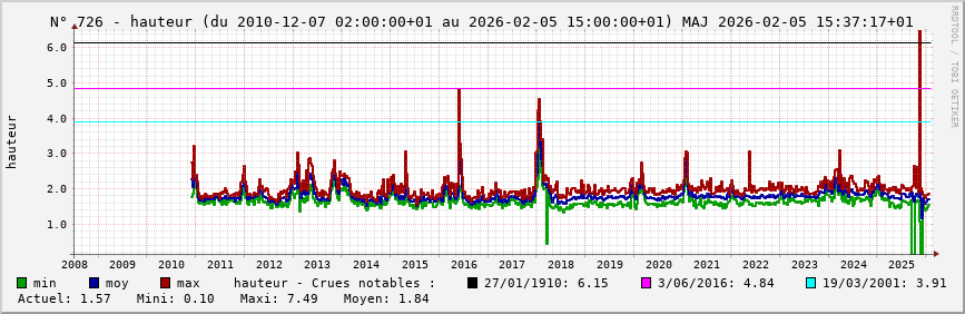 Pour la station nº 726 située à Corbeil-Essonnes (cours d’eau : Seine), vous trouverez :