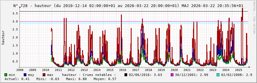 Accueil > Réalisations > Logiciels > Historiques de la hauteur de la Seine et de ses affluents > Statistiques de la station 728 : Courtomer [Paradis] (Yerres)