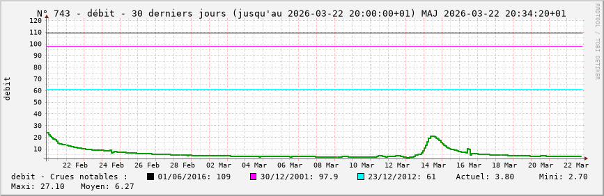 Pour la station nº 743 située à Pommeuse (cours d’eau : Grand-Morin), vous trouverez :