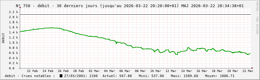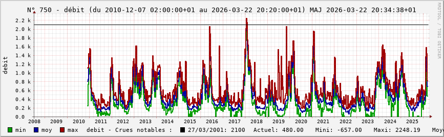 Pour la station nº 750 située à Vernon (cours d’eau : Seine), vous trouverez :