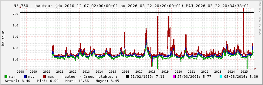 Accueil > Réalisations > Logiciels > Historiques de la hauteur de la Seine et de ses affluents > Statistiques de la station 750 : Vernon (Seine)