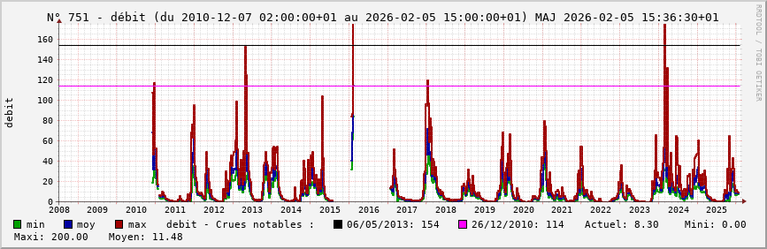 Accueil > Réalisations > Logiciels > Historiques de la hauteur de la Seine et de ses affluents > Statistiques de la station 751 : Beaumont (Serein)