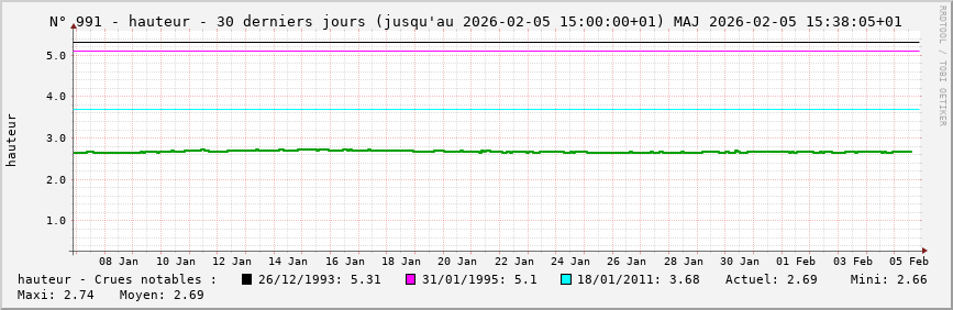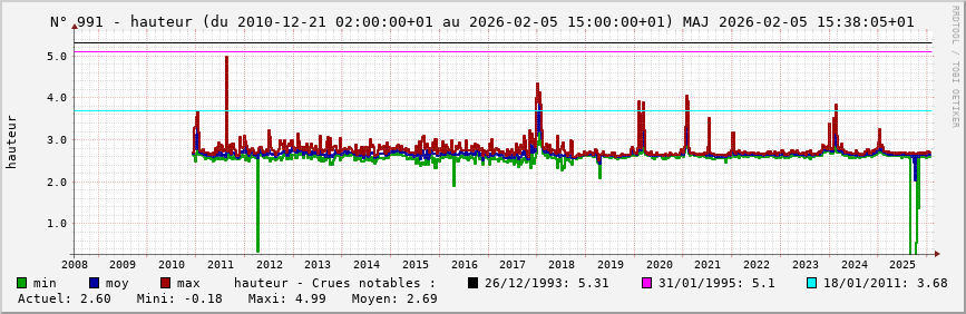 Pour la station nº 991 située à Soissons (cours d’eau : Aisne), vous trouverez :